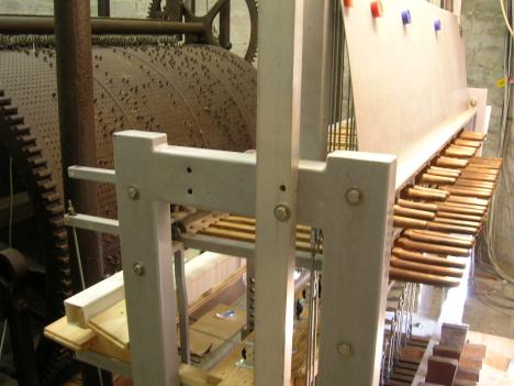 In 1437 werden drie nieuwe grote klokken geleverd en werd een torenuurwerk geïnstalleerd. Een eeuw later leverde Medardus Waghevens een klok van 1800 pond. Mechelse gieter Bartholomeus Cauthals leverde er in 1642 nog 14 klokjes bij. In 1678 vervaardigde Reinier Van den Steen een nieuw torenuurwerk. Helaas en ondanks herstellingen, verkeerden beiaard en torenuurwerk in 1745 in heel slecht staat. Daarom kwam er in 1746 een nieuw torenuurwerk van Chrétien Lion en kregen Leuvenaars Andreas III Jozef Vanden Gheyn en zijn zoon Andreas IV Lodewijk in 1776 de opdracht om een nieuwe beiaard te gieten.