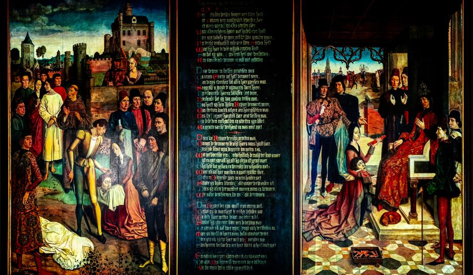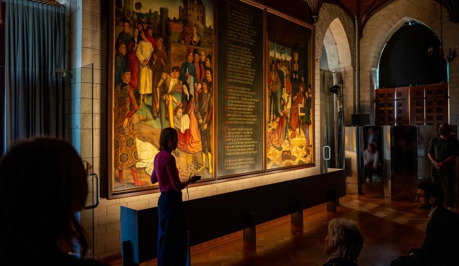 Het einde van het succesvolle New Horizons | Dieric Boutsfestival was meteen ook de laatste kans om de expo Bouts and beyond in het historisch stadhuis te bezoeken. Tot en met zondag 14 januari konden bezoekers - wandelend door verschillende historische kamers - de bijzondere band tussen Dieric Bouts en het Leuvense stadhuis ontdekken. Hoogtepunt was een kijk- en luisterervaring die je helemaal onderdompelde in Bouts' boodschap rond gerechtigheid en het verhaal van ‘De gerechtigheid van Keizer Otto III’.