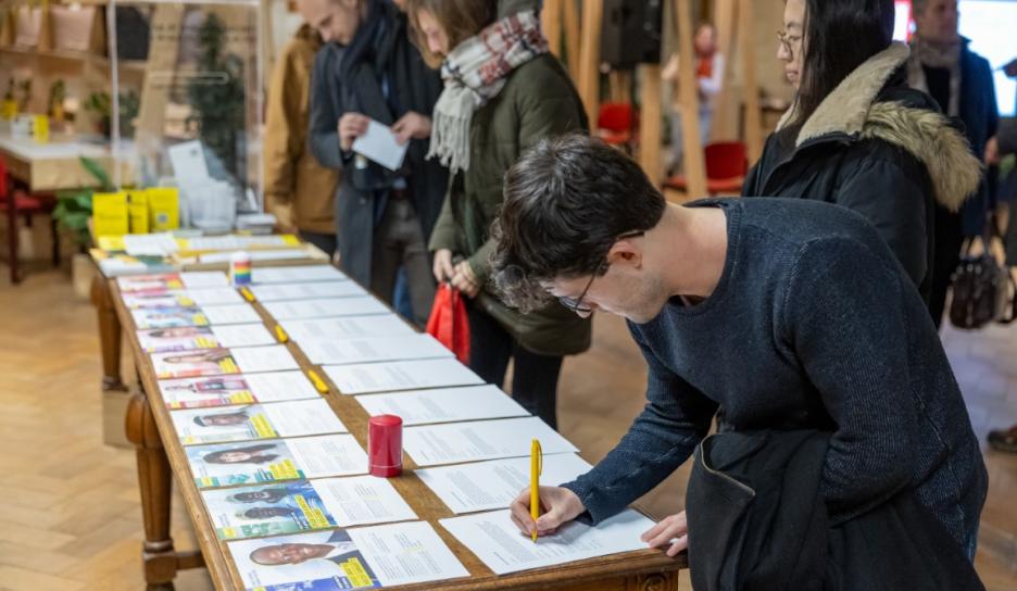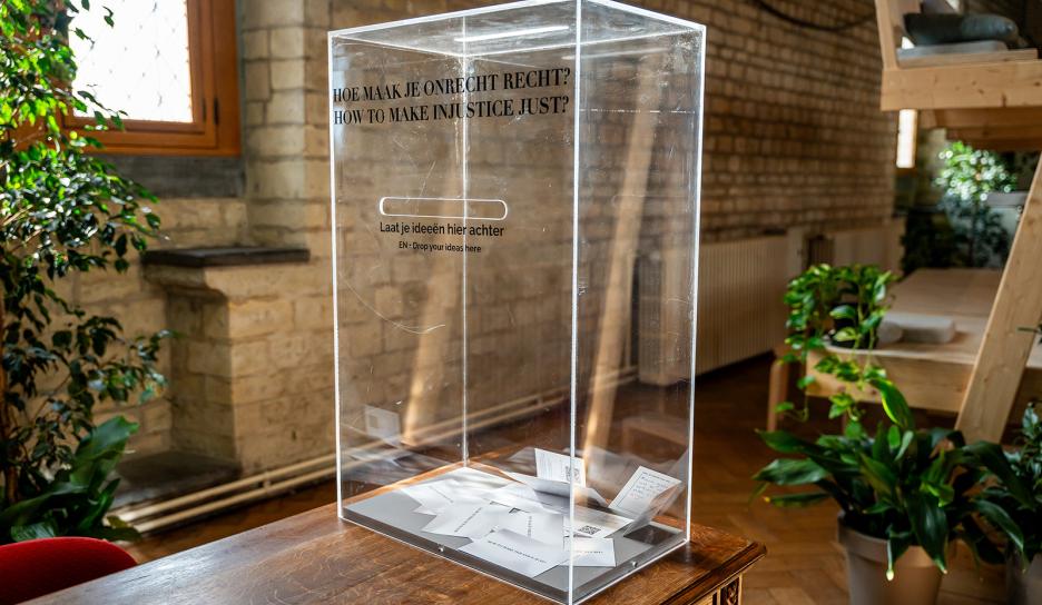 In de Studio op de tweede verdieping van het stadhuis werden verschillende mensen van binnen en buiten Leuven aan het woord gelaten. Van een studente criminologie, een vrederechter, activiste, nieuwkomer, kinderen tot een aalmoezenier van Leuven Centraal; zij gaven stuk voor stuk hun visie op gerechtigheid vandaag.
