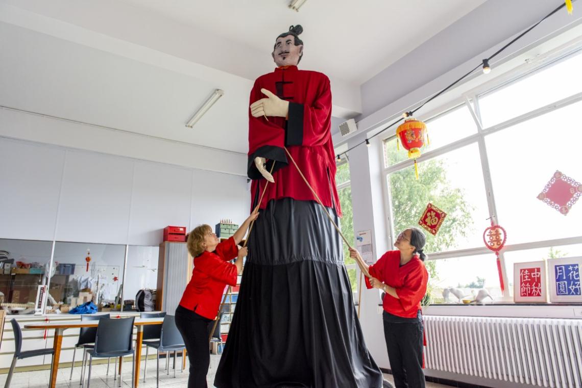 Inge: Voor de productie sloegen we de handen in elkaar met het Therapeutisch Activiteitencentrum van Sint-Kamillus. Mijn zus werkt daar en ik wist dat ze openstaan voor verschillende projecten. Het was een heel fijne samenwerking. Als dank daarvoor kregen zij de primeur en toonden we de nieuwe Da Tong tijdens de zomerbar van Sint-Kamillus. Drie dagen lang was onze reus aanwezig. We trakteerden met Chinese hapjes en thee en demonstreerden qiqong en een ‘stokdans’. De gasten van Sint-Kamillus namen deel aan de oefensessie en waren heel enthousiast. Sint-Kamillus denkt er zelfs over om op regelmatige basis qiqong te organiseren!
