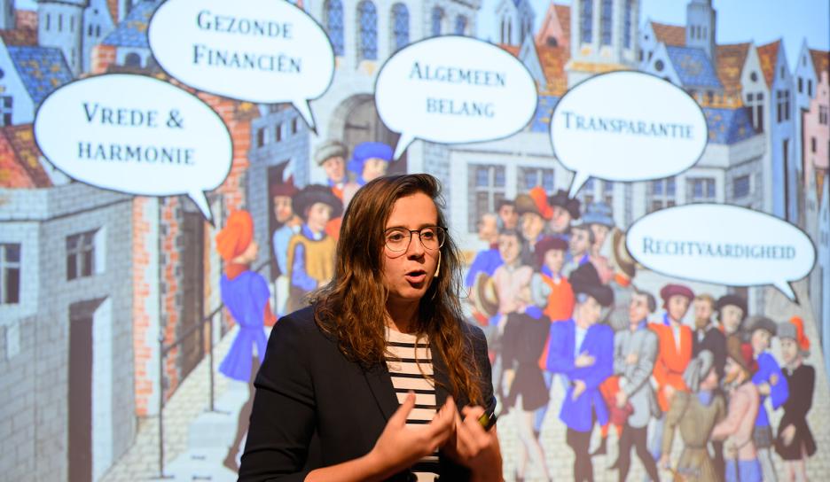 Via een virtuele wandeling door het stadhuis kwam de geschiedenis van het stadhuis, maar ook de geschiedenis van democratie tot leven. Aan de hand van middeleeuwse documenten, kaarten, plannen, prenten en nog veel maar archiefmateriaal kwam het publiek er meer over te weten en kregen ze bovendien een inkijk in de (laat)middeleeuwse samenleving die veel complexer is dan vaak wordt gedacht.
