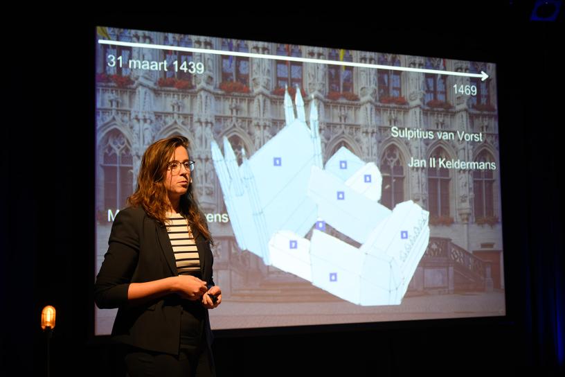 Via een virtuele wandeling door het stadhuis kwam de geschiedenis van het stadhuis, maar ook de geschiedenis van de Leuvense democratie tot leven. Aan de hand van middeleeuwse documenten, kaarten, plannen, prenten en nog veel meer archiefmateriaal kwam het publiek er meer over te weten en kregen ze bovendien een inkijk in de (laat)middeleeuwse samenleving die veel complexer is dan vaak wordt gedacht.