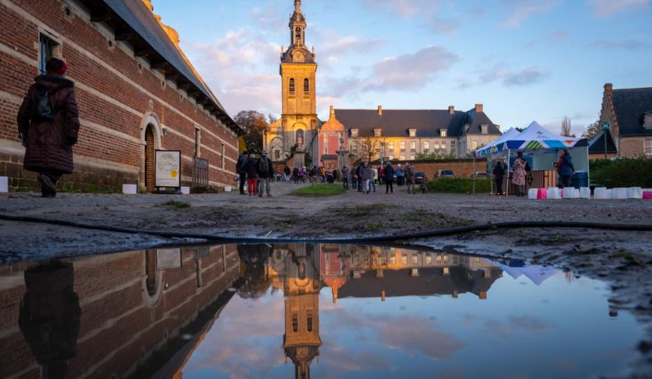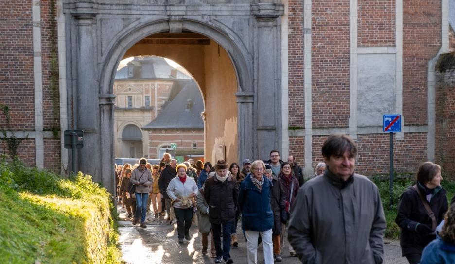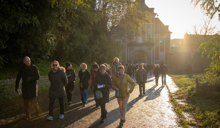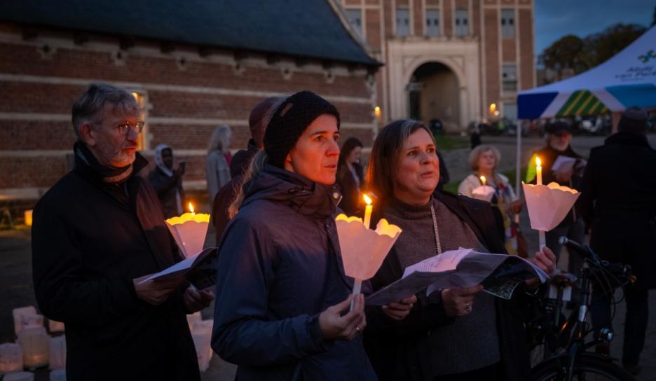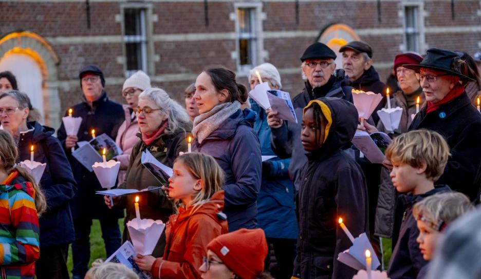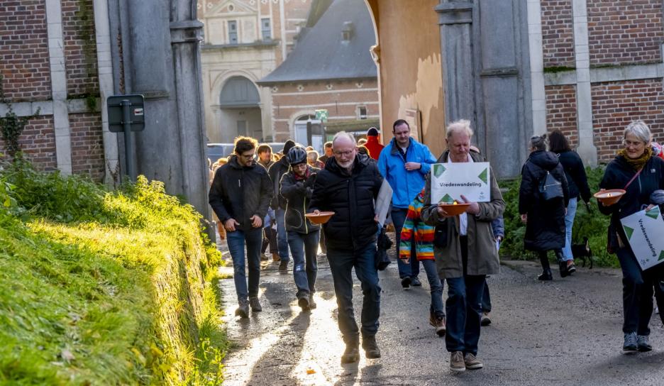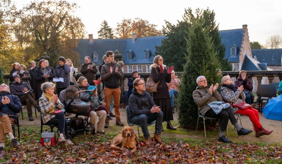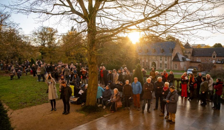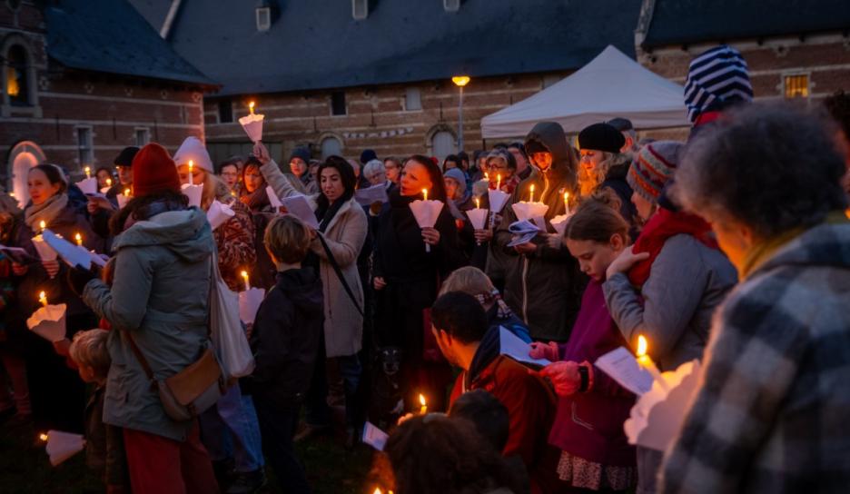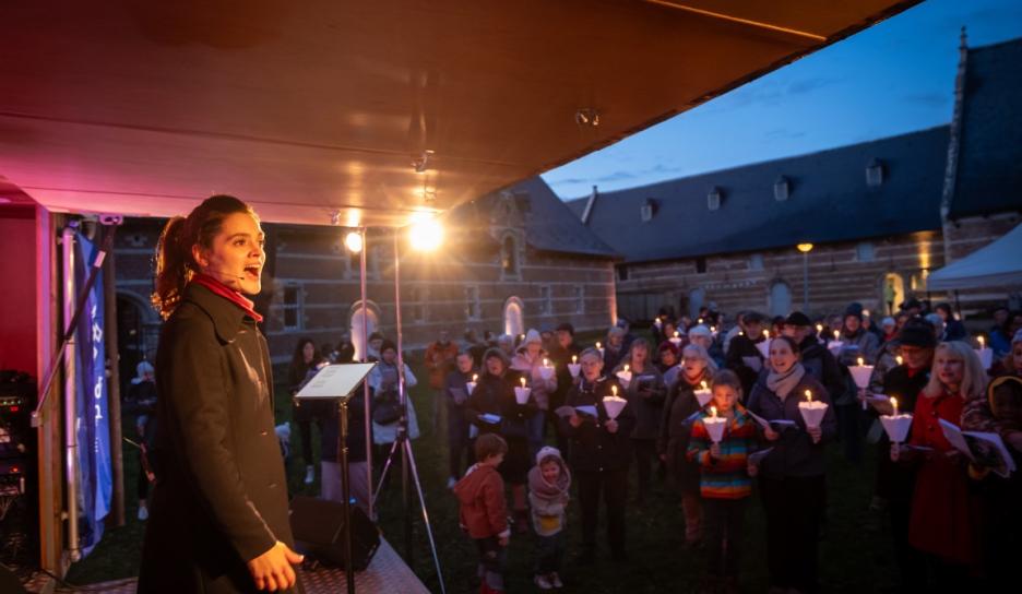 Om 16 uur volgde een bijzonder duoconcert van sopraan Noémie Schellens en beiaardier Luc Rombouts. De zangstem weerklonk samen met de beiaard over de Abdij van Park. De Vrienden van de Abdij van ’t Park leidden luisteraars op het ritme van de muziek door het abdijdomein. Aansluitend zongen de aanwezigen onder leiding van sopraan Noémie Schellens samen voor vrede met kaarslicht op het Neerhof.