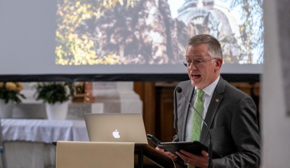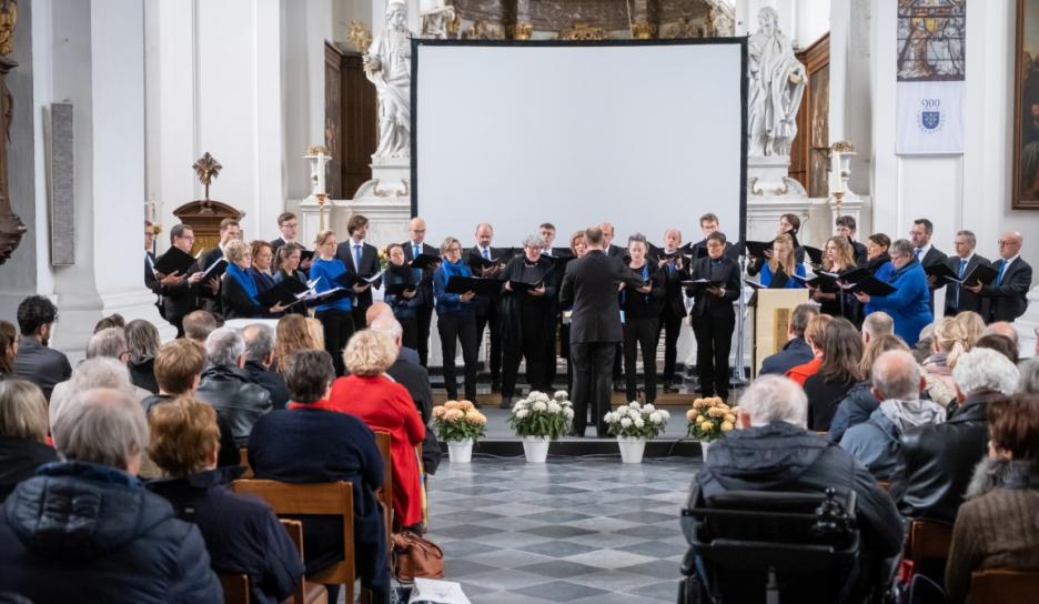 De vijfde verjaardag van de Vredesbeiaard grepen we ook aan om de meer dan 300 schenkers die dit instrument mogelijk maakten, te bedanken met een feestzitting in de abdijkerk met sprekers uit Leuven en Neuss, opgeluisterd door vocaal ensemble Musa Horti. Op de jubileumviering mochten we ook een delegatie uit Neuss verwelkomen.